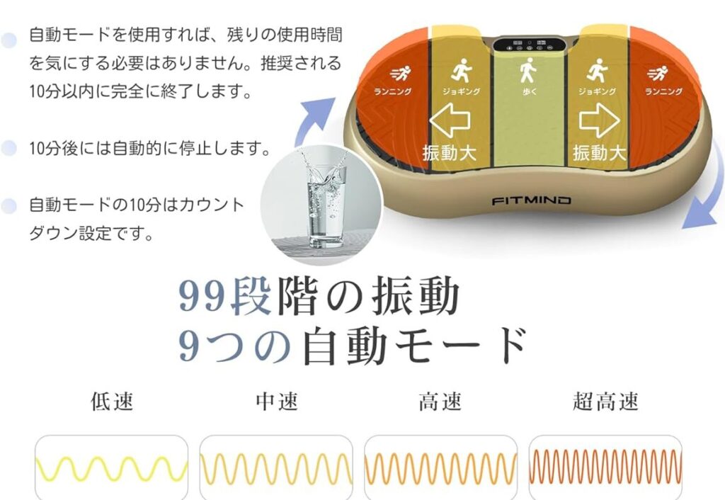 「ながら運動」がメインなら、自動で強弱が変わるオートモードが8種類以上あると飽きずに続けられます。また、体調に合わせて細かく調整できるよう、振動レベルが50段階以上あるものが理想的です。